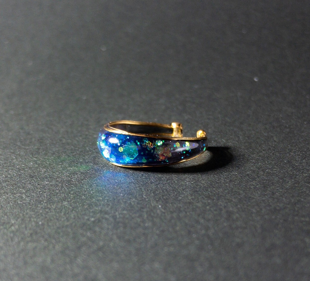 夜空のグラデーションや星の一つ一つを全て手作業でとじこめているので、全く同じ夜空にはならず、どれも一点ものになります。