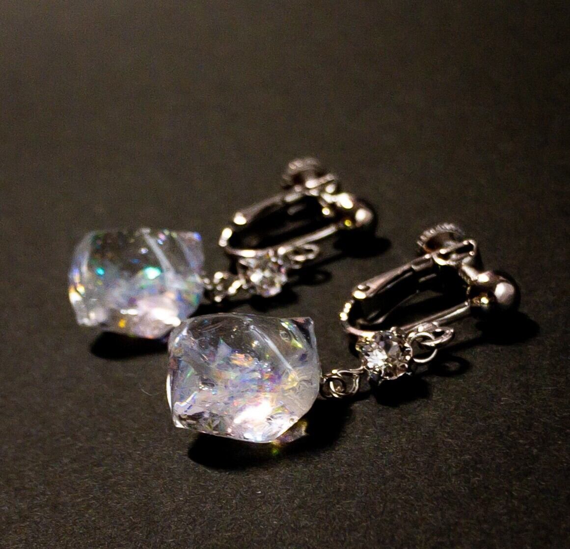 氷とフックを繋ぐビジューは、ヨーロッパのメーカーで生産された高品質クリスタルガラスを使用しております。