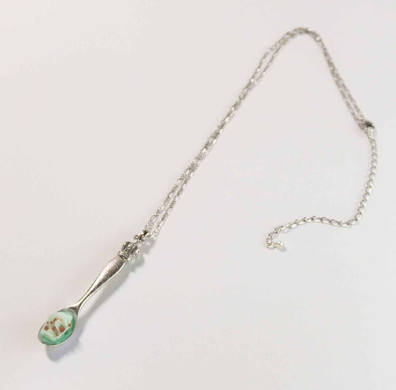 爽やかなミントカラーのチョコミントアイスをスプーンでひとすくいしたネックレスです。