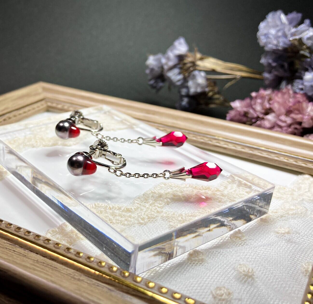 クリスタルガラスの雫がキラキラ揺れます。